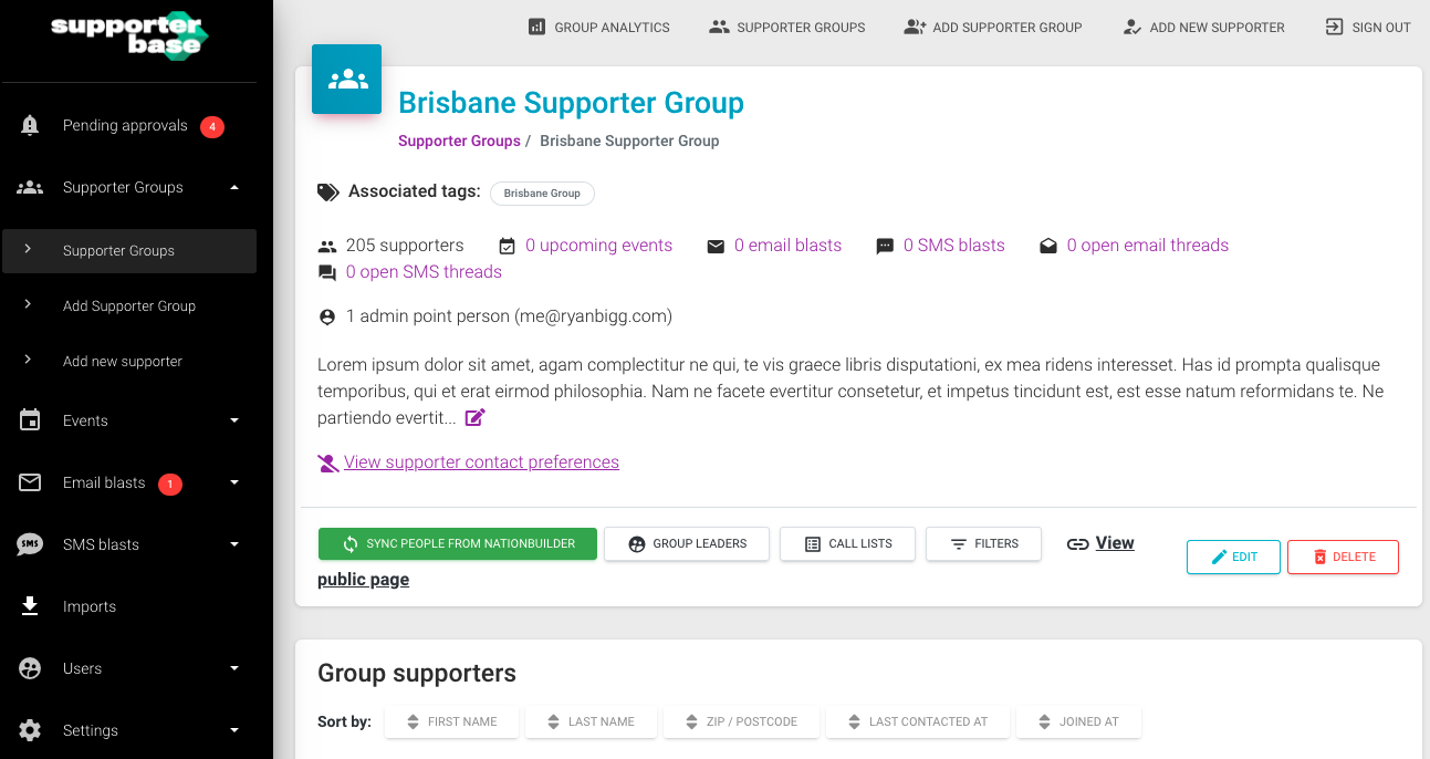 In response to this need, CodeNation developed SupporterBase. Launched in 2019, SupporterBase is an app for community organizing and campaigns. It’s designed to empower volunteers to lead local activities and manage groups, with communication tools and event management features that sync data easily with NationBuilder to enable grassroots campaigns at scale.